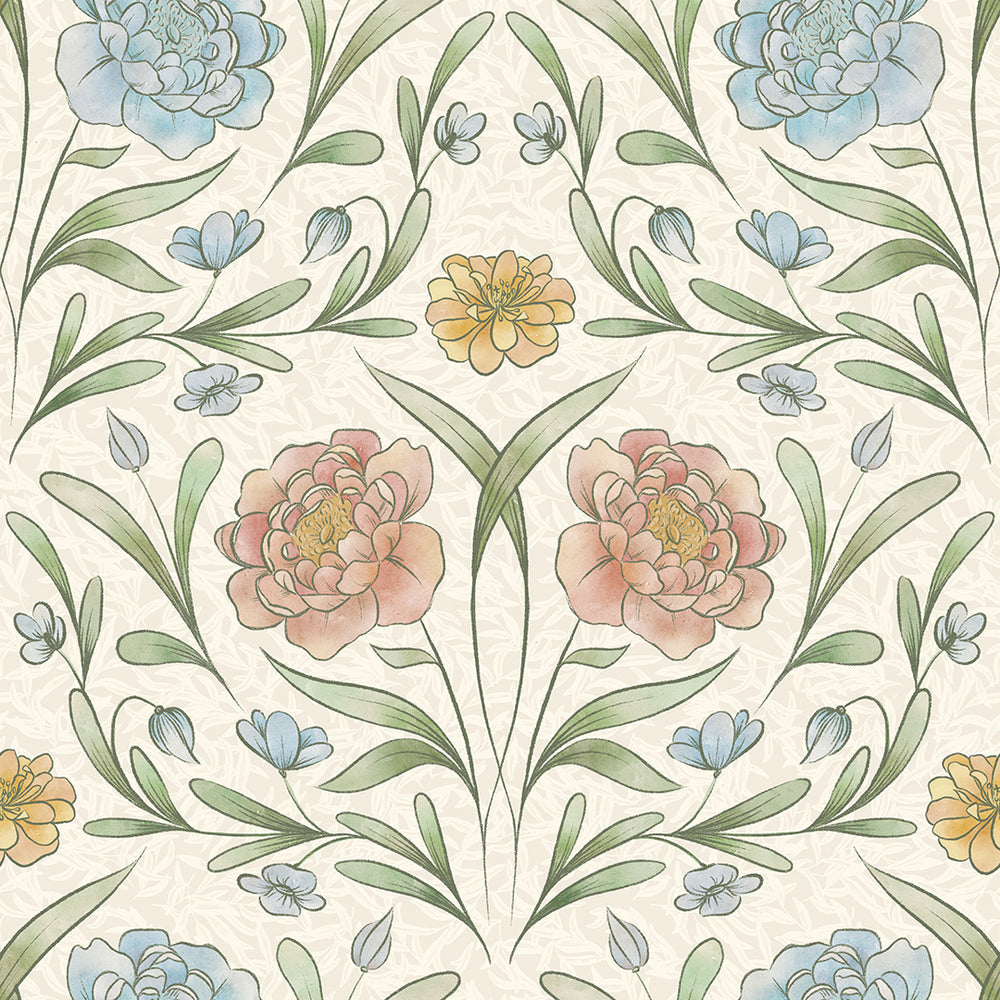 Embody the beauty of the English countryside in your home with this timeless floral wallpaper design. The colourway blends balmy summer shades on a warm, vintage cream backdrop. This heritage design offers a modern take on a classic style, and elegant accents inspire a traditional feel in any space.