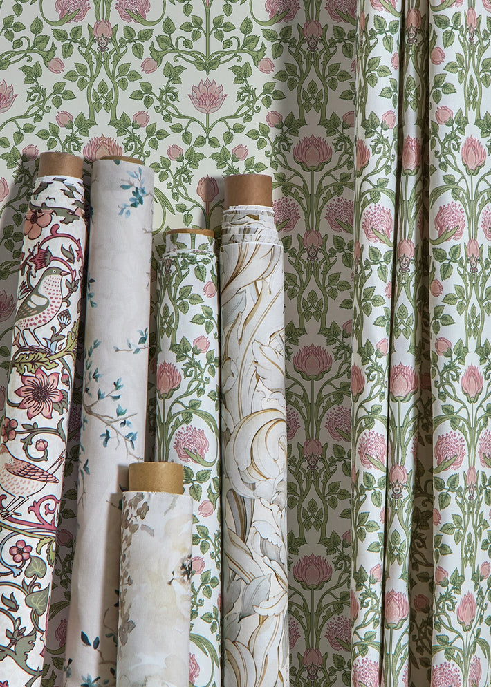 Inspired by the beauty of the English countryside, our floral fabric collection adds a touch of nature’s charm to your home. From soft pink Art Nouveau patterns with graceful floral motifs to fresh green ditsy designs that bring the outdoors in. Perfect for any setting, these designs are equally at home in a cottage core-inspired bedroom or as a statement feature in the living room to inject some personality.